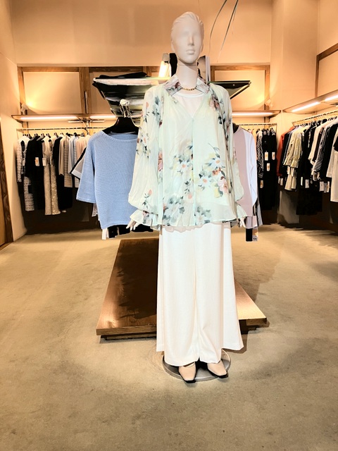 こんなブラウスはいかがでしょう。   そよ風のなか、ロングストライドで歩きたい。